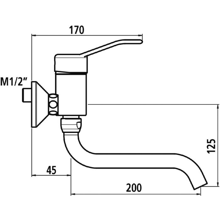 Entraxe 150 mm. Raccords stop purge M1/2'' M3/4''. Bec orientable par dessous Ø 22 L. 200, autovidable avec brise-jet étoile en laiton. Cartouche céramique Ø 40 avec butée de température maximale pré-réglée. Corps, bec et manette en laiton chromé.