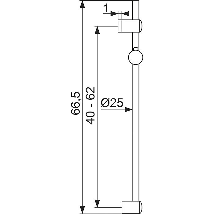 Le pied supérieur est débouchant pour permettre le rattrapage d'entraxe des anciens perçages de la barre à remplacer. Tube laiton et pieds en ABS Entraxe : variable jusqu'à 61,5 cm Fixation de la douchette sur le cône du flexible Tube ø 25 mm curseur réglable et orientable Déplacement du curseur par pression sur un bouton Livré avec une calle de compensation carrelage Ep.10 mm