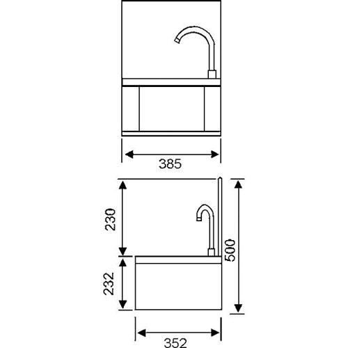 Livré avec bec col de cygne, robinet temporisé, prémélangeur et fixations.