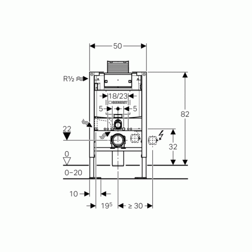 Bâti-support métallique autoportant. Hauteur réduite à 82 cm pour zones de faible hauteur (combles, sous fenêtre). Pour montage universel sur tout type de cloison. Ensemble complet prémonté comprenant : Mécanisme de chasse double touche avec déclenchement frontal ou par le dessus par plaque de commande Omega (non fournie). Réservoir encastré et isolé Omega 3/6 litres. Alimentation par la gauche. Possibilité d'une commande déportée permettant un déclenchement de la chasse dans un rayon de 2 m. Livré sans plaque avec coude d'évacuation et manchettes de raccordement.