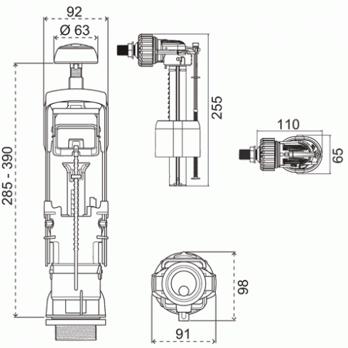 Mécanisme universel à poussoir double débit : - Adaptateur multimarques pour le remplacement de la majorité des soupapes. - Montage rapide sans démontage du réservoir. - Adaptable par simple réglage de l’étrier à la plupart des réservoirs de 300 à 400 mm de hauteur. - Rattrapage de l’axe réservoir-couvercle. - Tube de trop-plein réglable en hauteur. Robinet flotteur compact 0500 : - Alimentation latérale 3/8'' en laiton. - Très silencieux (classe acoustique 1). - Réglage facile du niveau d’eau. - Remplissage rapide 0,13l/sec. à 3 bar.